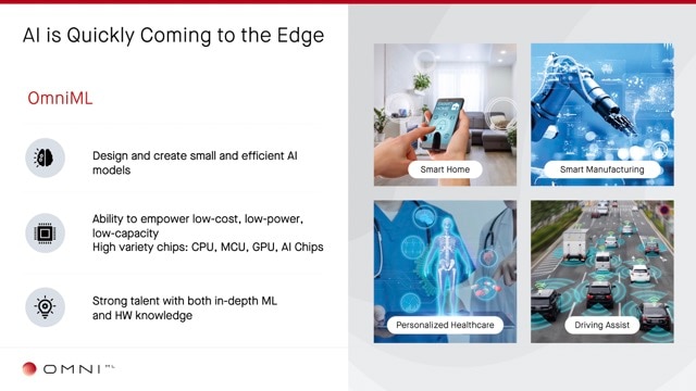 OmniML is helping multiple customers achieve massive savings in computational and model design efficiency costs; our technology enables optimized hardware-aware AI models on all possible edge devices. Founded in 2021, OmniML is headquartered in San Jose, Calif.